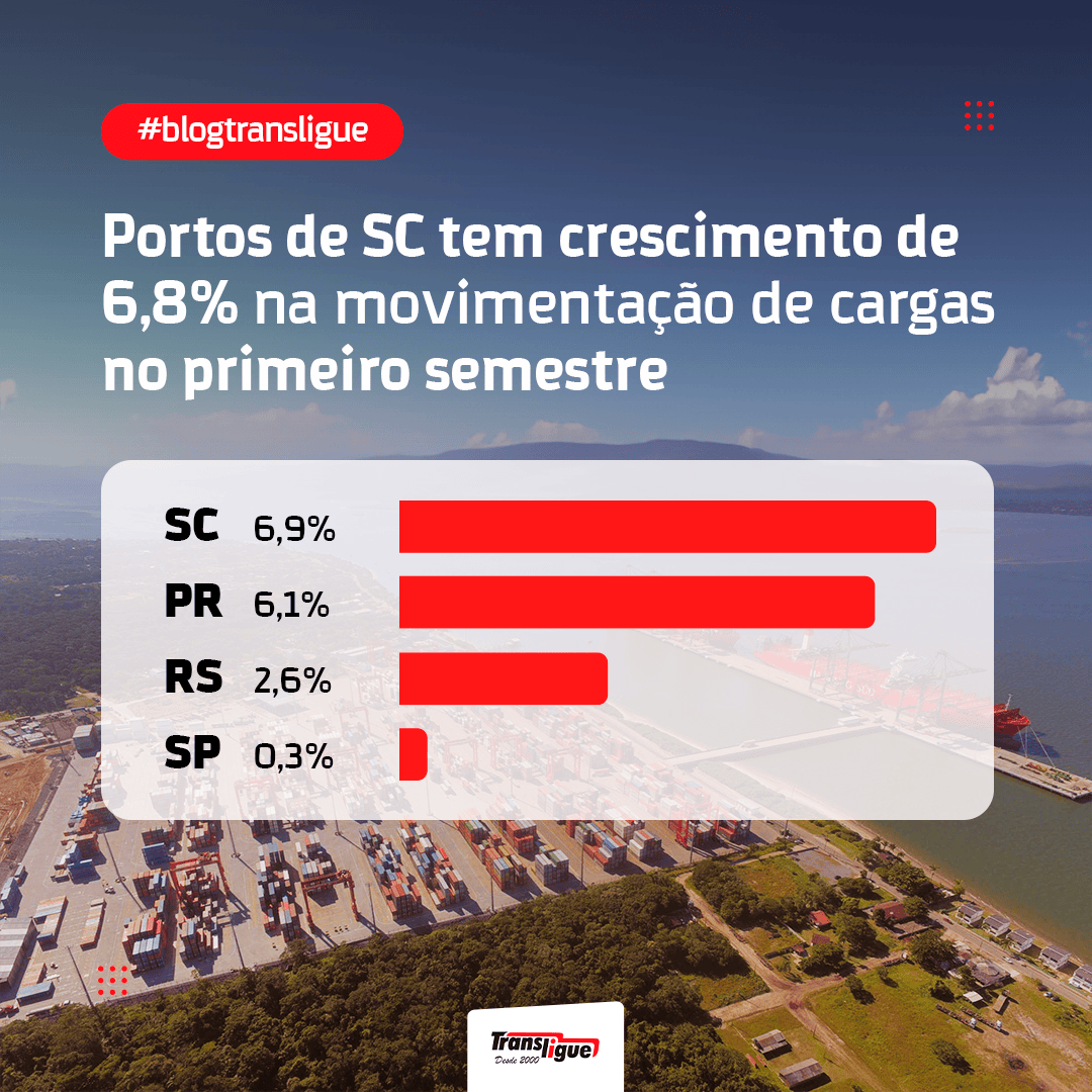 A movimentação de cargas nos portos de Santa Catarina teve um crescimento de 6,87% no primeiro semestre de 2023, em relação ao mesmo período de 2022.